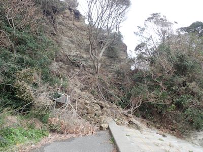 磯に向かう山が崖崩れ |