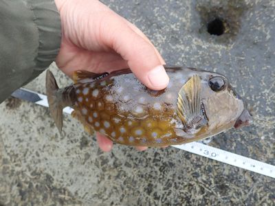 またまた釣れたハコフグ(実入の磯) |