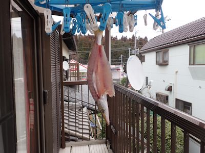 カマスは開いて洗濯干しに吊るして干す |