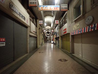 八幡浜市内のアーケード。ちょっと寂しい |
