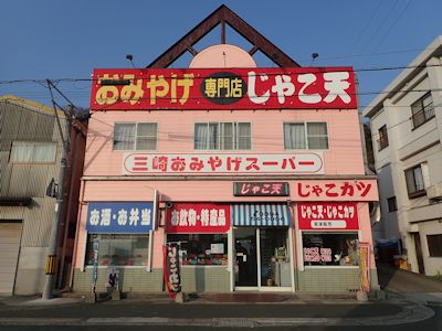 三崎港前にあるお土産屋。名物じゃこ天を求める(愛媛県伊方町) |