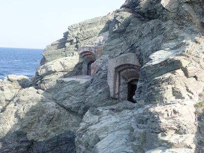 海に向かう断崖に穿たれた砲台跡(佐田岬の豊予要塞) |