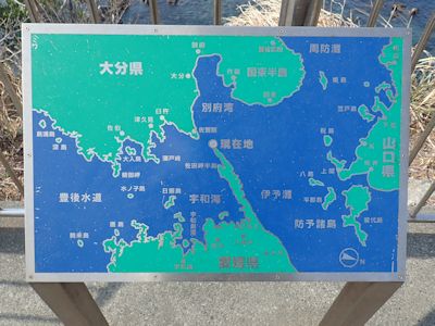 地図で見ると、佐田岬の先端は、九州のすぐそばまで突き出ている |