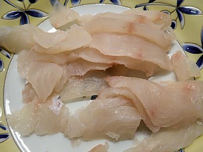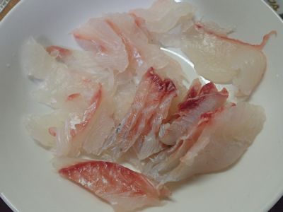ヘダイの刺身。柔らかく、甘い。 |