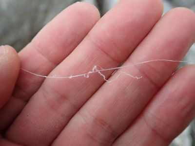 ハリスを見ると、いたるところが擦れていて、表面が剥けている。2号だったが、いつ切れてもおかしくなかった。