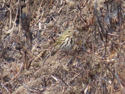後から調べると、ビンズイかタヒバリ。顔の模様からして、おそらくビンズイだろう。