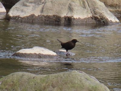 カワガラスは何しろ川沿いにしか生息しない鳥だそうで、観察していると、石の上を歩いていたと思ったら、水の中にずんずんと入っていく。水中の水生昆虫などを捕えて食べるそうである。確かに、水鳥のように水の中にずんずんと入り、泳いでいる。