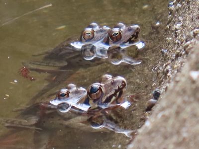 ニホンアカガエルは、他のカエルよりも早く、1月には産卵を始めるそうだ。2月には包接盛ん、というのも納得。