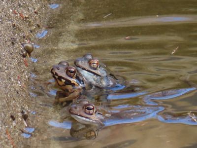 風車の建っている区画の端の方に、コンクリートの貯水池があり、そこに水が流れこむようになっているのだが、そこで無数のカエルが泳ぎ回り、そして包接(交尾)していた。