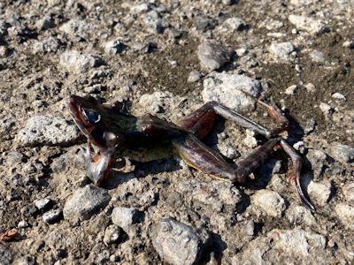 この風車の山もそうだが、人間が環境を破壊することによってどんどん生息場所を失って死滅していくカエルたちだが、このように人間が新たに造った人工池で繁殖するとは、したたかな適応力と生命力は侮れない。