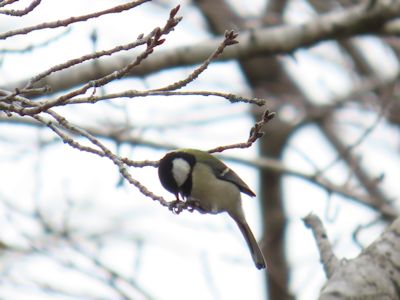 シジュウカラが木の芽をくわえる (赤池、宮崎県串間市) |