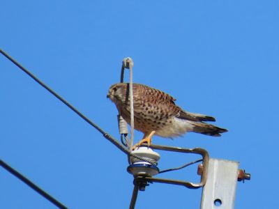 電柱のガイシ上に止まるチョウゲンボウ (宮崎県串間市) |