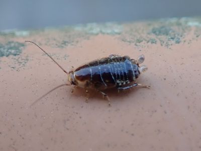 ゴキブリの幼体だと思うが、尻の先に2つの卵のようなものを