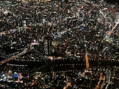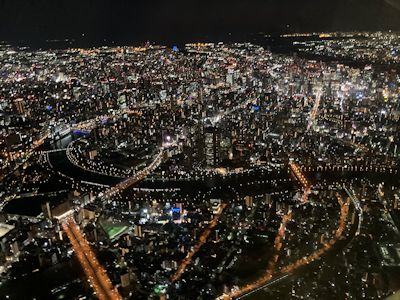大阪着陸時、大阪の夜景が恐ろしく広がっている。圧倒的だ。