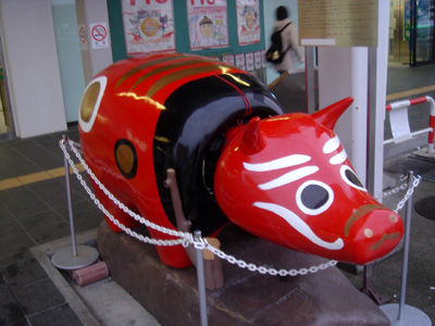 米沢駅構内一画を、直江兼続の不気味な坐像が陣取っている。NHK大河ドラマ『天地人』を見た人ならお分かりだろうが、米沢は、上杉家、そして直江兼続ゆかりの地である。先週会津編で書いた通り、上杉家は越後から会津に移った後、関ヶ原の戦いで西軍となったことにより、徳川家康により米沢に減封されたわけである。