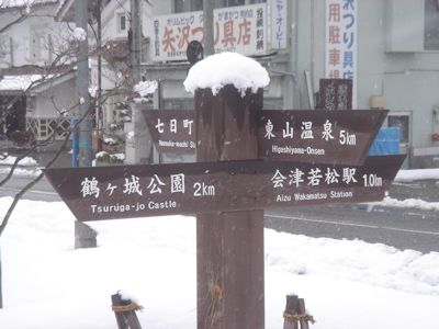 飯盛山は雪に覆われ、観光順路の坂道も凍り付いている。観光客の姿は少ない。ツルツルの斜面を滑りながら下り、会津若松駅に戻る。