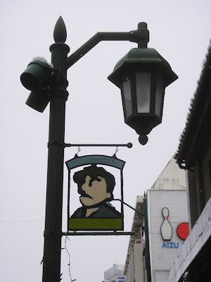 会津若松では、レトロな町並みが残る七日町周辺をそぞろ歩く。会津の街には、昔ながらの洋風や蔵風の建物がかなり残っている。野口英世青春通り。