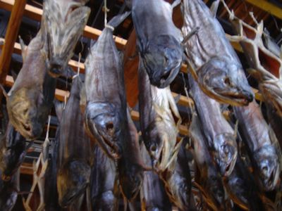 鮭の町屋、喜っ川。土間にぶら下がる鮭
