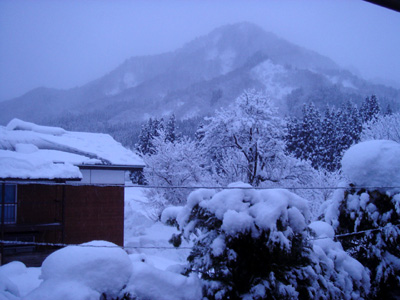 1月9日土曜日、朝7時に起きると雪が積もっていた。ここ数日、毎晩雪が降る。これから行く只見は、現在1.5mの積雪だそうである。