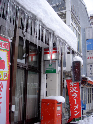 冬の米沢は恐ろしく寒い。こんなに寒いとは思わなかったが寒い。外は大雪。駅のロータリーにやって来る車を見ると、すべてバンパーの下にツララを作っている。気温の低さを物語る。