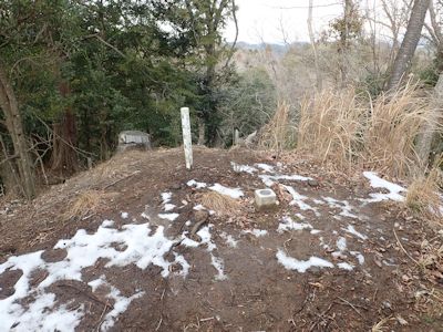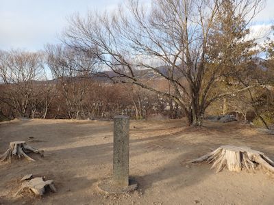 かれこれ1時間半くらい歩いている。アップダウンは激しくないが、長い。1時半になり、腹が減った。小ピークに登ると展望がいい。四等三角点がある。ここで飯にしようかと思ったが、風が吹き抜けて寒いし、おそらくもうすぐで林道に着くはずなのでもう少し歩く。