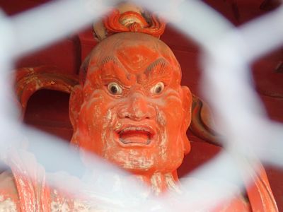 洞穴内部に祠があり、日中はこの格子が開いて参拝できるようになっていると思われる。