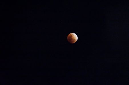 夜9時前に月が黒く欠け始め部分食となり、10時前に完全に影で覆われ、皆既食状態となる。