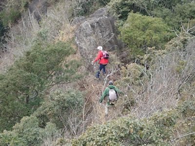 どうやら地元の人らしい。確かに、房総の山特有のいくつかの尾根分岐が出てきて迷いもした。ちょっと道迷いのある登山道なのだろう。まぁ、要所要所にはテープがあったので、それほど困難な道ではない。