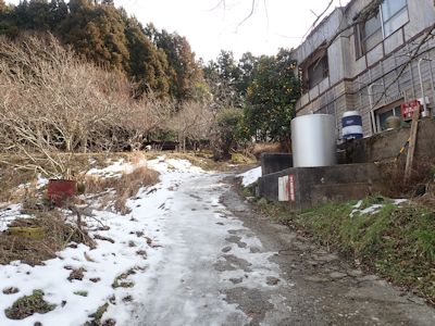 またまた始動が遅く、朝9時半に千葉市を出発。途中、山中に入ると、国道の道端にもまだ先週の雪が残っている。1週間前の22日、関東としては大雪が降ったのだが、以降先週はずっと気温が低かったため、房総半島と言えどもまだ雪が多く残っている。