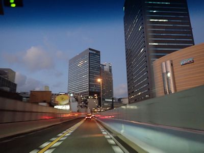 幸運なことにその後はあまり渋滞せずで、名古屋を通り抜け、名神で大阪中心部に突入。水色にライトアップする通天閣を左に見ながら夕暮れのなんばを駆け抜ける。大晦日の阪神に渋滞はない。