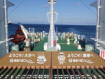 今回、千葉への戻りは先述の通り北九州→東京の素晴らしく楽ちんのフェリーで帰ってきたが、なんとあろうことか、年末年始はこのフェリーは運休している。1月4日が東京発の初便であり、これだと6日の仕事始めの日にしか着かないので、セカンドオプションとして大阪→志布志のフェリーを予約しようとしたが、満席でキャンセル待ちをしたものの取れず。よって、8月に宮崎へ行ったときと同様、全行程陸路で関門海峡を渡るルートしかないのか・・・と思っていたところ、別のフェリーが浮上した。愛媛佐田岬の三崎港→大分佐賀関港を結ぶ、その名も国道九四フェリーである。このフェリーのいいところは、朝7時頃から夜11頃まで、1時間間隔で多数の便があることである。これだ!と予約して、四国からフェリーで九州に渡るルートで帰る。