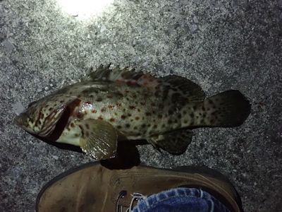 やはりハタだった。調べると最大80cmにもなるそうだから、リリースすべきだったが、出血もひどく弱っていたので、ここはありがたく今晩にいただくことにする。
