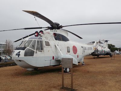 海上自衛隊の飛行機やヘリコプターが野外に展示されている |