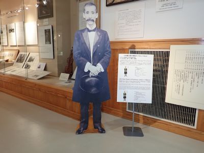 小村寿太郎の等身大パネル。彼の身長は156cmだったらしい |