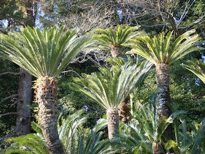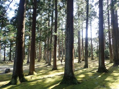 飫肥城本丸跡。巨木が立ち並ぶ |