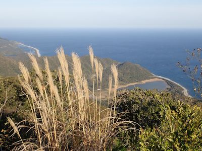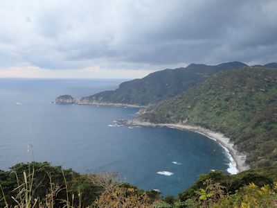 細い林道を入ってきた断崖の上に慰霊碑は建っている。はるか下に海。そして船首系の岬が幾重も海に突き出している。大隅半島で見たような海岸線だ。