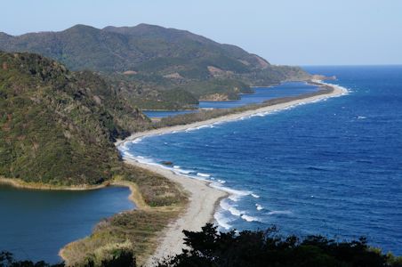 海が左右からせり出してきて、土地が細長いくびれ状になっている場所と言えば、函館と男鹿半島の付け根を思い出すが、ここは砂州だそうである。くびれ部分がびっしりと街になっている点では、函館はここに似ている。