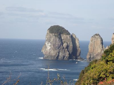 炎の走りでようやくナポレオン岩が見える前の平展望所にたどり着く。ナポレオンの横顔に似た巨大な岩礁が海に浮かんでいる。