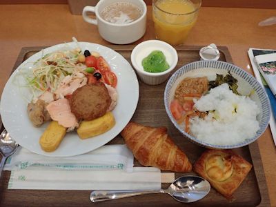 朝6:20起床、7時前にチェックアウト。フロント目の前にあるレストランで朝食。バイキング。