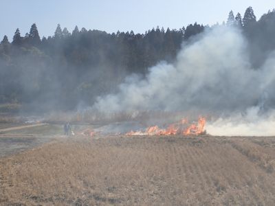 彼らは消防団の人たちで、農家の方々が火をつけたり消火したりするのを指導や手伝いをしているらしい。例年ならこの辺りの3地区合同でやるそうだが、今年はコロナ禍で各地区別々でやっているのだという。
