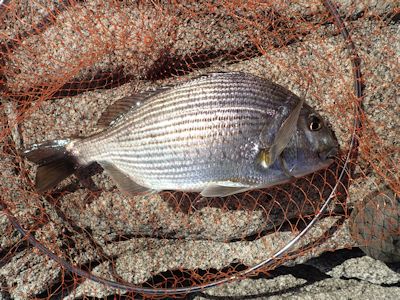 釣り始めて1時間後、ヘダイ40cm。ここまでは良かったが・・。 |