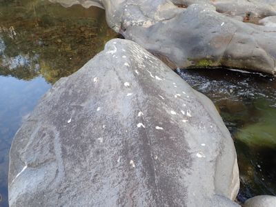 つまり、川の上の石から石に飛び移っている。何をしているのだろうか?