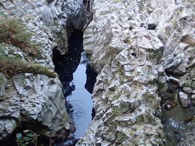 ここはすごかった。沖水川の谷が、切り立った奇岩に挟まれてゴルジュ状になり、延々と続いている。驚くべき渓相だ。