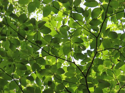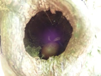 4月、木のうろに木の実が入っている。鳥が貯食のために