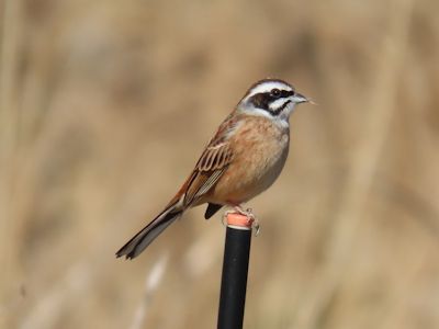 ホオジロのオス。何かくわえてる? (宮崎県串間市) |