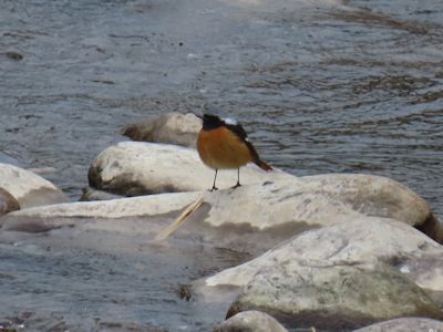 昼休み、牧ノ谷川には、川の石の上にジョウビタキのオスがいた。
