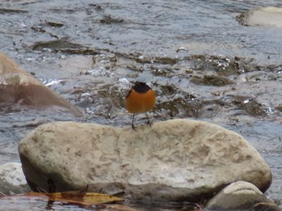 ジョウビタキのオスが牧ノ谷川の石の上にいた (宮崎県串間市) |