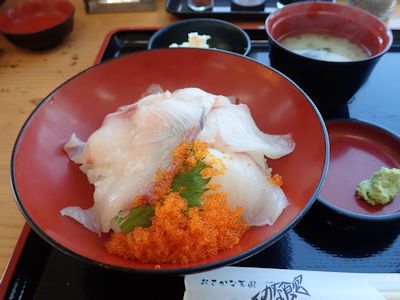 黄金カンパチ丼650円を頼む。カンパチは、根占など錦江湾にある漁港の名物らしい。