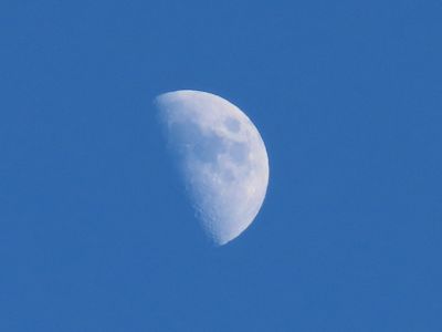 青空に半月がくっきりと浮かんでいる。