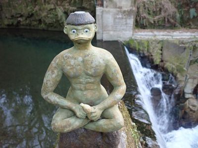 ここにはカッパ伝説があるそうで、カッパの彫刻が色んな所に鎮座している。